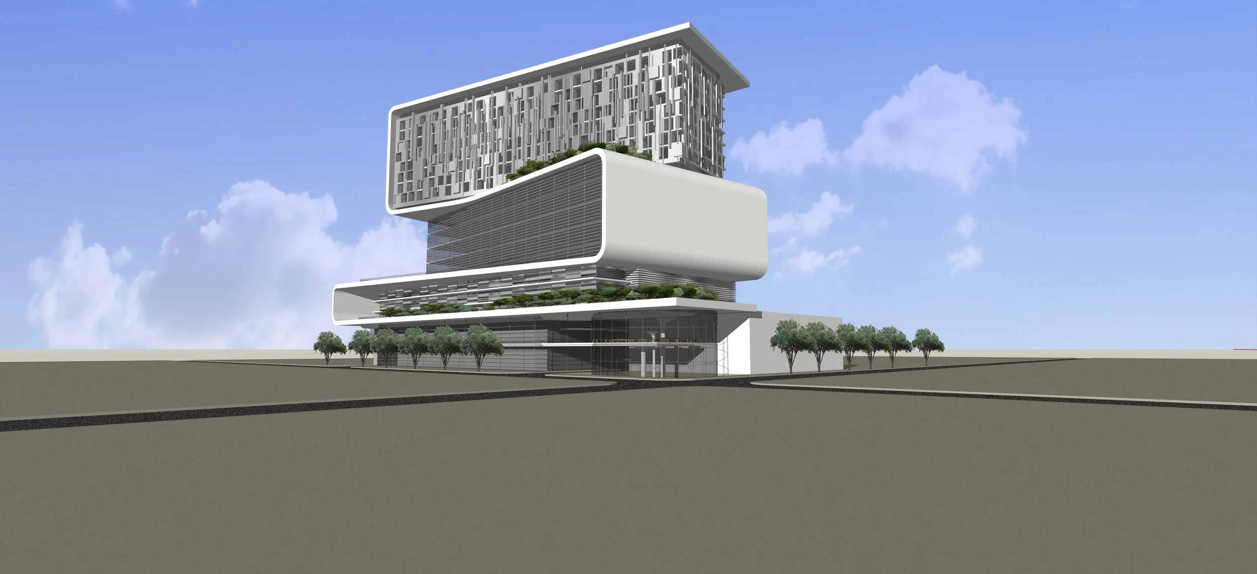 The building massing features a notable “twist “ to the relationship of the uses- the Retail orthogonal to the street, the Office with a skew off of the orthogonal to optimize setback from adjacent properties and the Residential with an orientation to maximize views of the Dallas skyline and beautiful tree canopy of the established nearby neighborhoods. The form is energetic and notable providing a landmark icon address for the city.